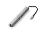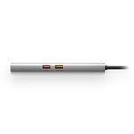 Incluye puertos USB-A y USB-C, salida HDMI para video en alta definición y conexión RJ45 para internet por cable, ideal para laptops ultradelgadas y dispositivos modernos.