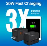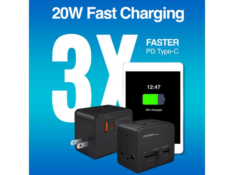 Equipado con un puerto PD Tipo C de 20 W integrado y un puerto USB QC3.0 de 18 W, este adaptador permite una carga rápida de múltiples dispositivos, garantizando que te mantengas conectado dondequiera que estés. La seguridad es nuestra prioridad gracias a sus obturadores integrados, un fusible de seguridad y un indicador LED de encendido que muestra cuándo el adaptador está listo para usar.
