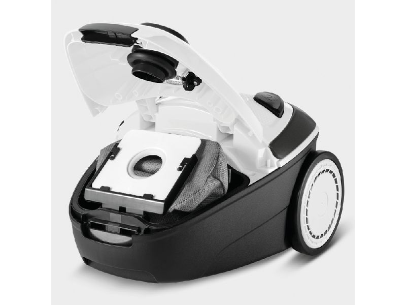 Aspiradora eficaz y ecológica limpia suelos y alfombras sin esfuerzo. Además puede usarse en zonas estrechas, esquinas, bordes y otros puntos de difícil acceso. Su cómodo sistema de bolsas de filtro simplifica la eliminación de bolsas enteras, y gracias al práctico almacenaje de accesorios, siempre impera el orden. De diseño elegante y de prácticas dimensiones, la aspiradora resulta perfecta para los hogares modernos. Este equipo ideal para familias ofrece también un filtro Hepa que absorbe el 90 % del polvo y las partículas y mantiene el aire limpio incluso durante la aspiración.