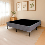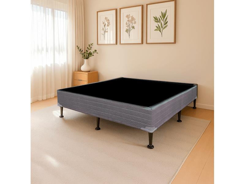 Aporta estabilidad y estilo a tu dormitorio con esta base fabricada en madera de origen renovable. Su acabado en color gris se adapta fácilmente a cualquier decoración, mientras que sus patas plásticas aseguran un soporte resistente y duradero. Perfecta para colchones matrimoniales, brinda firmeza y prolonga la vida útil de tu colchón.