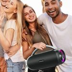 Bocina portátil con 20W de potencia y tecnología Bluetooth 5.0 para una conexión estable. Resistente al agua con certificación IPX5, ideal para interiores y exteriores. Permite emparejar dos bocinas mediante función TWS para un sonido estéreo envolvente.Diseño compacto y potente para disfrutar tu música en cualquier lugar.
