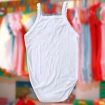 Mameluco para bebé de la marca Reyco, color blanco, de tirantes. Ideal para uso diario o para ocasiones especiales. Hecho con materiales suaves y cómodos para la piel del bebé. Talla 2.