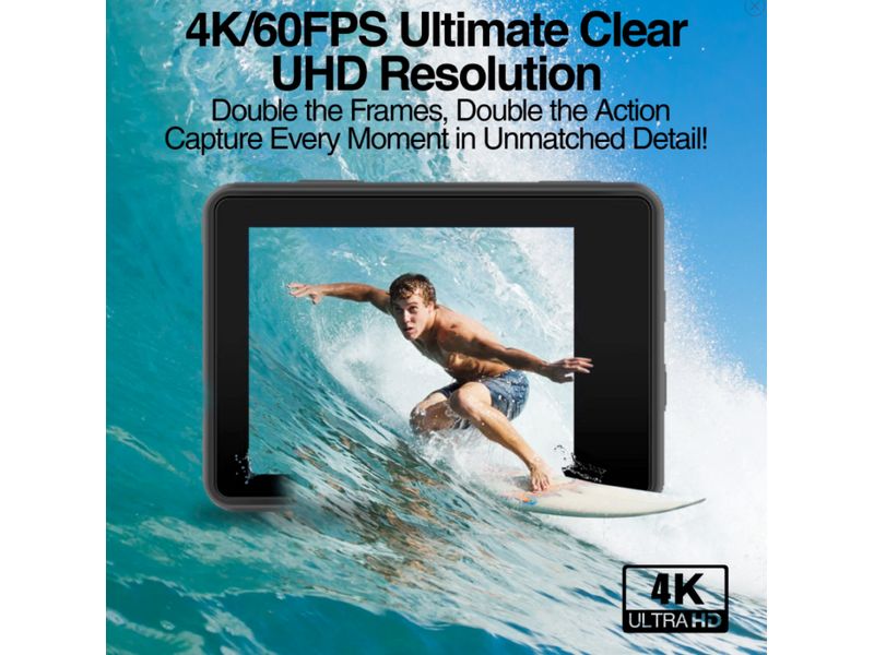 Experimenta la Epic 88, una cámara de acción diseñada para capturar los momentos más emocionantes de la vida en 4K nítido a 60 fps. Su intuitiva pantalla táctil IPS de 2.0" pone el control total al alcance de tu mano, lo que facilita navegar por la configuración y encuadrar tus tomas. Equipada con estabilización de imagen EIS avanzada de 6 ejes, ofrece imágenes fluidas y estables, incluso durante actividades de alta intensidad. El control remoto incluido te permite capturar la toma perfecta a distancia, agregando comodidad a tus deportes extremos, aventuras al aire libre y más. Con pantallas duales, una construcción robusta IP68 a prueba de polvo y agua que permite la inmersión hasta 100 pies, y modos de disparo versátiles, la Epic 88 es tu solución todo en uno para capturar fotos y videos impresionantes. Además, viene completa con una estación de carga dual y dos baterías reemplazables, lo que garantiza que nunca te pierdas un momento.