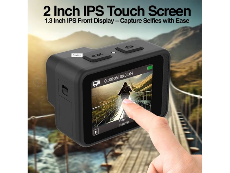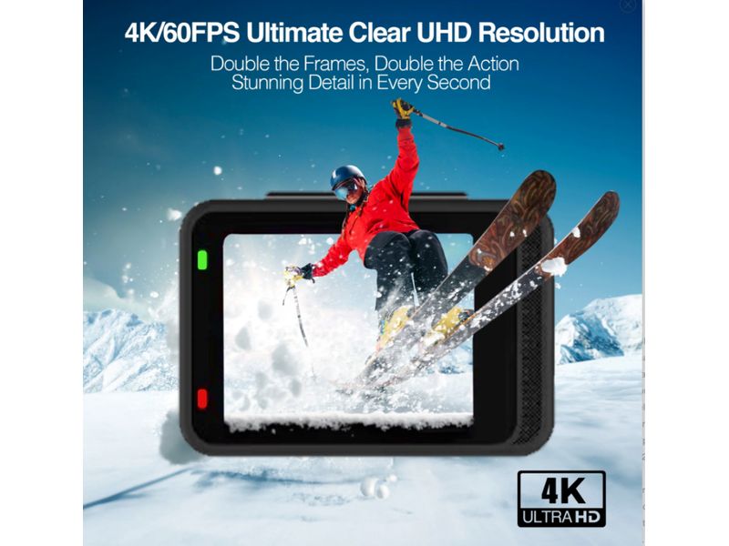 La Epic 90 redefine la captura de aventuras, ofreciendo video 4K a 60 fps y fotos de 24 MP con EIS avanzado de 6 ejes para una estabilización mejorada, lo que garantiza imágenes fluidas y de alta calidad incluso en los entornos más dinámicos. Gracias a su resistencia al agua integrada, la cámara soporta profundidades de hasta 21 metros, eliminando la necesidad de una carcasa adicional. Esto la convierte en la compañera ideal para deportes extremos, aventuras al aire libre, exploración submarina, ciclismo y mucho más. Equipada con dos pantallas: una trasera IPS de 2.0" para una reproducción de video fluida y una frontal IPS de 1.3" para selfies rápidas, la Epic 9190 ofrece rendimiento y comodidad. La intuitiva interfaz táctil permite una navegación sencilla, mientras que el control remoto incluido te asegura capturar cada momento con precisión y facilidad.