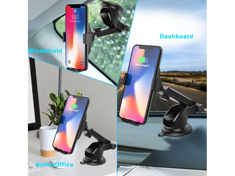 El soporte perfecto para coche que carga todos los dispositivos con carga inalámbrica rápida y lo mantiene seguro mientras conduces. Equipado con un sistema de sujeción automático que bloquea y libera el dispositivo automáticamente. El brazo telescópico se adapta a las longitudes que desees para todas tus necesidades de visualización. Soporte totalmente ajustable con rotación de 360 grados para una visualización rápida en vertical y horizontal. Diseñado con una almohadilla de gel adhesiva de alta calidad para fijar tu dispositivo a la mayoría de las superficies, incluidas las texturizadas.