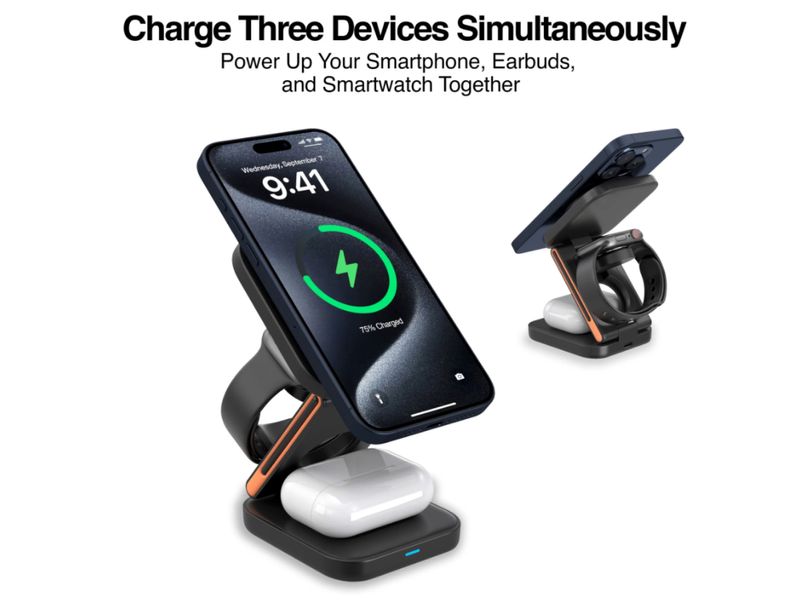 Carga simultánea para smartphones, auriculares y smartwatch compatibles