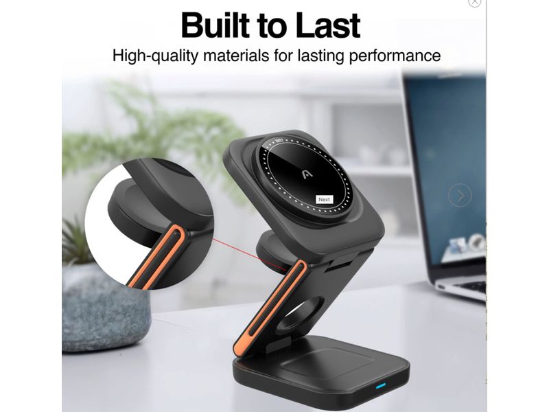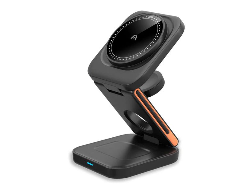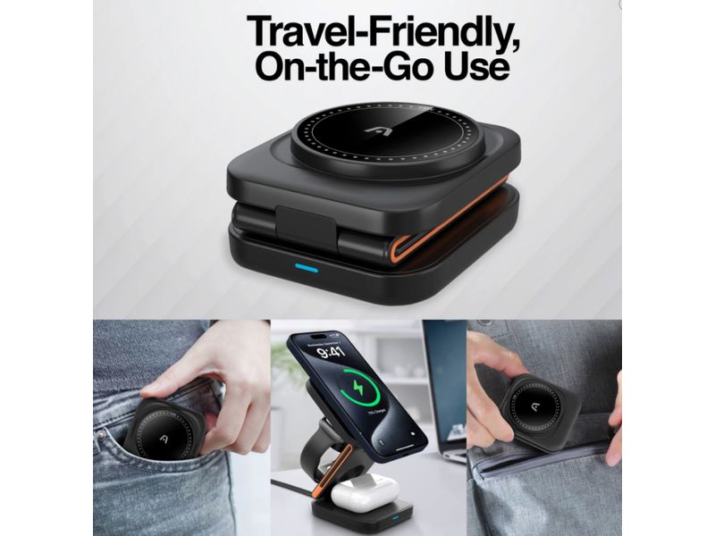 El cargador plegable magnético S4 3 en 1 de 15 W de ArgomTech es una estación de carga versátil diseñada para ofrecer eficiencia y portabilidad. Con capacidad para cargar simultáneamente un smartphone, auriculares inalámbricos y un smartwatch, este cargador plegable es perfecto para quienes están siempre en movimiento. Compatible con teléfonos con carga inalámbrica magnética integrada, su diseño compacto cabe fácilmente en el bolsillo y su potente conexión magnética garantiza que los dispositivos se mantengan seguros durante la carga. Ideal para viajes y uso diario, este cargador combina comodidad con una alta eficiencia de carga.