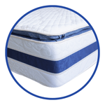 Colchón de resorte embolsado convencional que no trasmite movimiento, con base de Foam de alta densidad. Pillow Top en Foam hiperventilado, telas antialérgicas y antiácaros. Sistema no vuelta, un Pillow Top de un lado. Ortopédico. Grosor 15 pulgadas, soporta 110 kilos por persona. Tamaño King 200x200