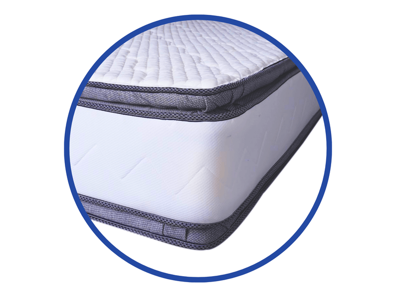 Colchón de resorte reforzado, con doble Pillow Top. Telas antialrgicas. Ortopédico. Grosor 15 pulgadas, soporta 110 kilos por persona. Tamaño Queen 150x200