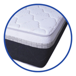Colchón de resorte embolsado convencional que no trasmite movimiento, con base extra firme de Foam Tela anti alérgicas y antiácaros. Sistema no vuelta, con un Euro Top de un lado. Ortopédico. Grosor 14 pulgadas, soporta 120 kilos por persona. Tamaño matrimonial 140x190