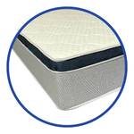 Colchón de resorte embolsado convencional que no trasmite movimiento, con doble capa de Foam hiperventilado. Sistema no vuelta, con un Euro Top de un lado. Ortopédico. Grosor 14 pulgadas, soporta 120 kilos por persona. Tamaño matrimonial 140x190