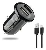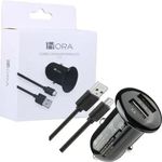 Combo cargador para automovil, dos conectores USB A, marca 1 HORA, alimentacion de 12 voltios, color negro, compatible con todas las marcas de celulares, tabletas y consolas portatiles.