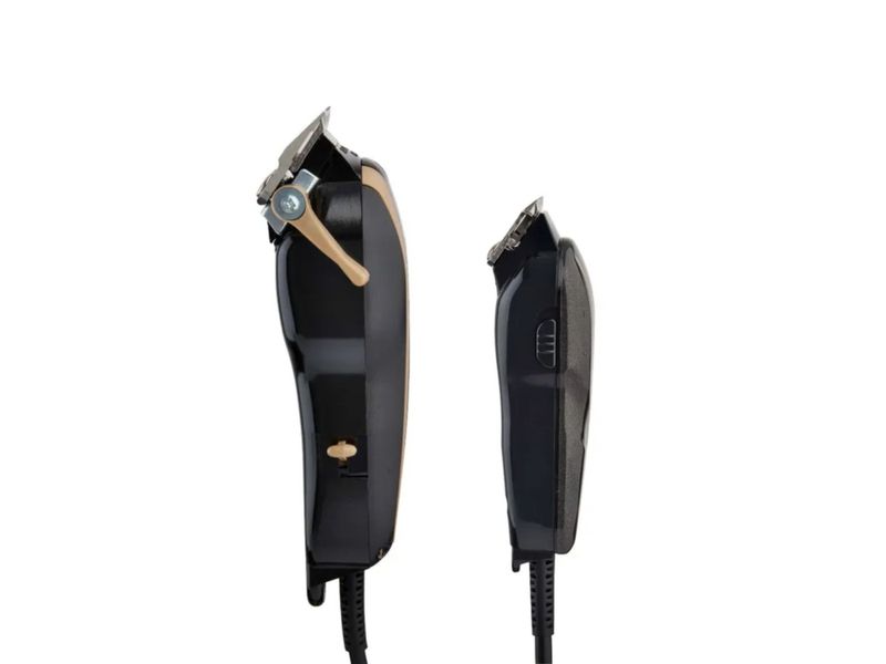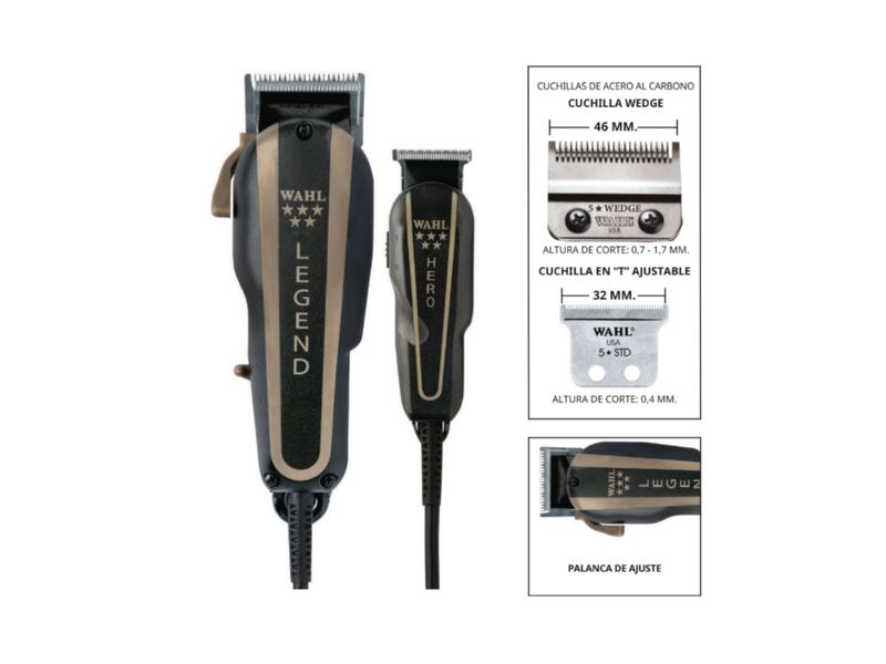 El Wahl Combo Barber 8180-108 (Serie 5 Estrellas) reúne en un solo set dos de las herramientas favoritas de los barberos profesionales: la Legend, equipada con cuchilla Wedge® y motor vibratorio V9000 de alto rendimiento, ideal para cortes potentes y desvanecimientos suaves; y la Hero, una recortadora compacta con cuchilla en “T” ajustable y motor vibratorio de 5000 RPM, perfecta para perfilar, detallar y realizar acabados precisos.