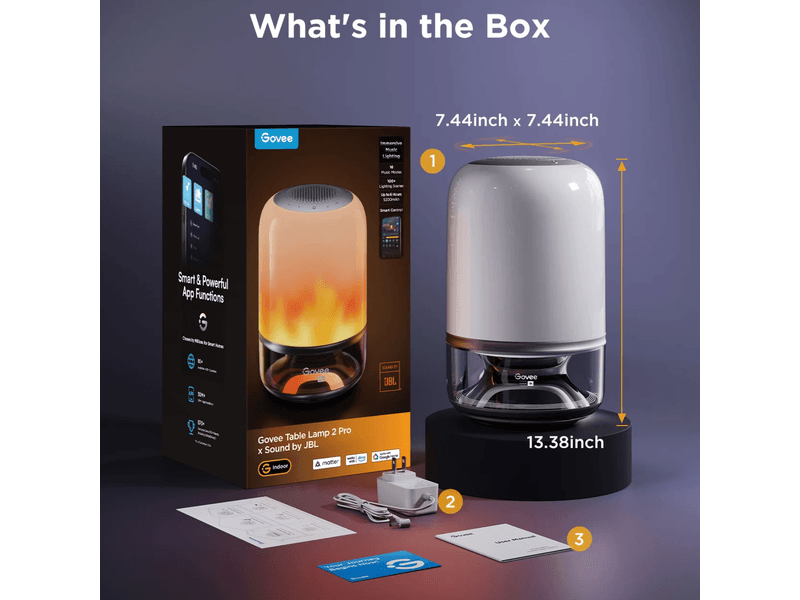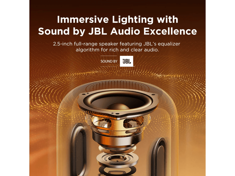 La Govee Table Lamp 2 Pro combina iluminación inteligente RGB con sonido premium JBL para crear una experiencia multisensorial única.
