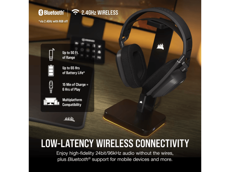 Headset Gaming Corsair HS80 Max Inalámbrico 2.4 GHz + Bluetooth Dolby Atmos RGB CA-9011295-NA