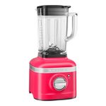 Licuadora KitchenAid de 5 velocidades, color rojo carmesí. Frasco de vidrio temperado de 48 onzas con acople metálico, cuerpo metálico. Potencia 1200 Watts, 120 Voltios 60Hz. La calidad y textura de lo que se licue se logra por la forma del frasco, que crea vórtices dentro del frasco, que redirigen la mezcla hacia las cuchillas asimétricas y la inteligencia detrás del control de motor de velocidad Inteligente, que detecta automáticamente el contenido y mantiene la velocidad óptima para una mejor mezcla.
