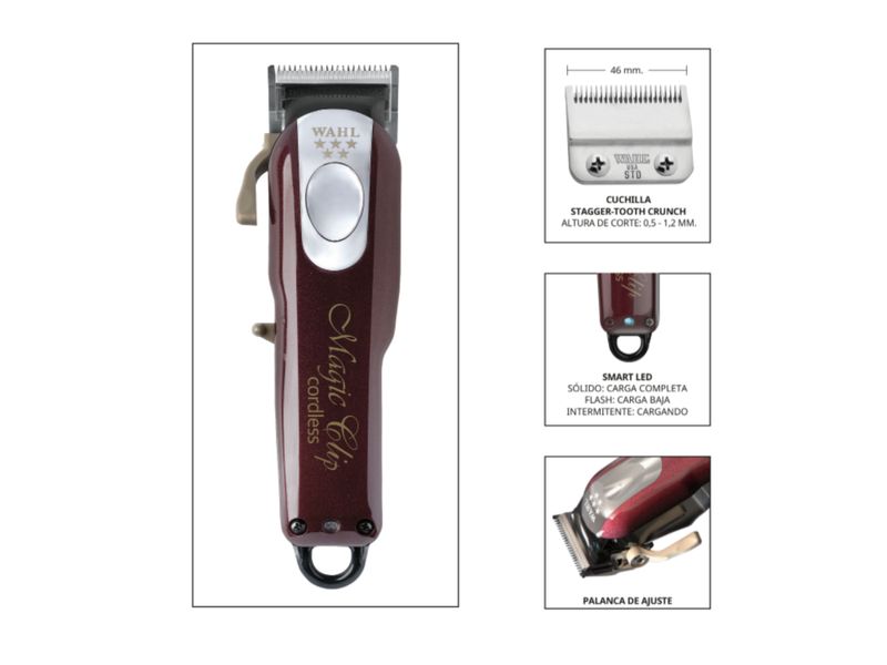 La Wahl Magic Clip 8148-308 combina potencia, precisión y libertad de movimiento gracias a su diseño inalámbrico con batería de iones de litio que ofrece hasta 120 minutos de uso continuo.