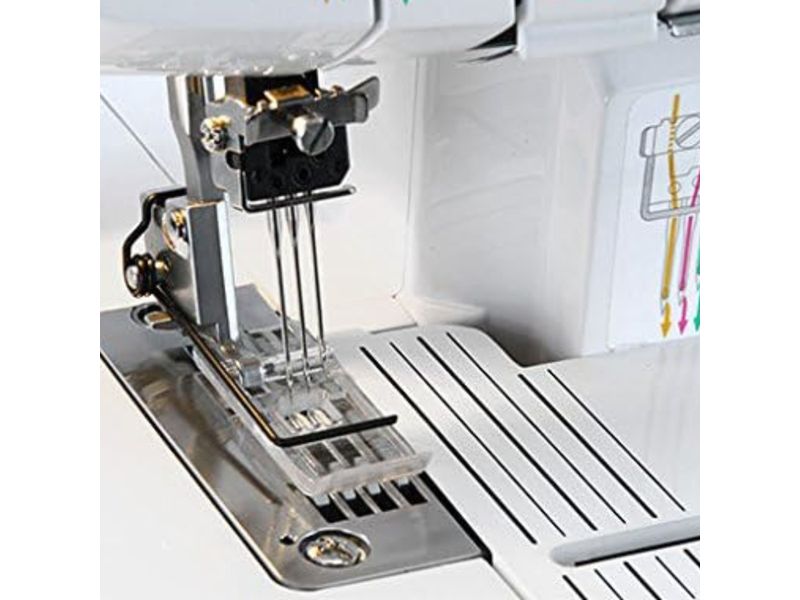 Ofrece costuras de recubrimiento de 2, 3 y 4 hilos, ideal para dobladillos, ribetes y decoraciones. Su diseño robusto y fácil enhebrado la convierten en una herramienta práctica para confección y arreglos.