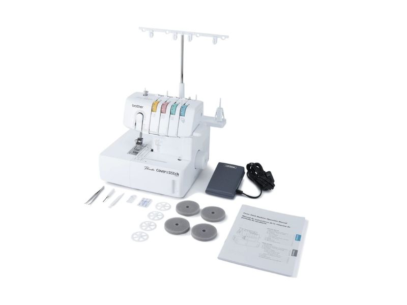 La máquina de coser Brother 2340CV es una recubridora diseñada para acabados profesionales en tejidos elásticos y planos.