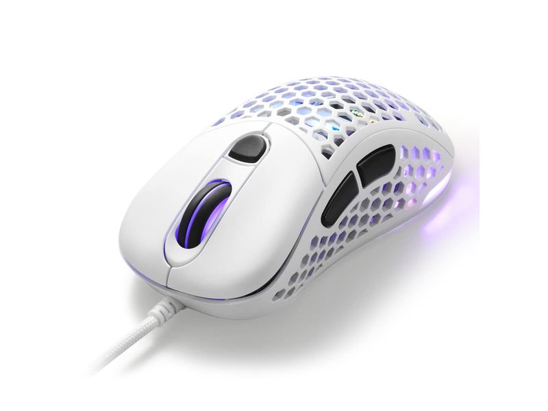 Incorpora un sensor óptico PixArt PMW3389 con una resolución de hasta 16.000 DPI, ideal para movimientos rápidos y precisos. Su estructura perforada tipo panal reduce el peso sin comprometer la durabilidad, mientras que la iluminación RGB personalizable le da un toque distintivo.