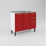 Artículos para el hogarComedores y Muebles de CocinaGabinetes, Alacenas Y EstantesMueble de acero para cocina Bertolini modelo Colors base de acero color rojo con fregadero 3 puertas 2 gavetas 105cm