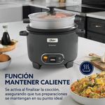 La Arrocera 3 en 1 de Oster simplifica tus comidas diarias. Cocina arroz sin que se pegue, gracias a su recubrimiento antiadherente Oster DiamondForce, que además es 15 veces más fácil de limpiar* y no se daña ni se desgasta con el uso**. Sofríe ingredientes como cebolla o ajo antes de agregar arroz, quinoa o lo que prefieras. Usa la vaporera para cocinar vegetales o pescado al mismo tiempo. Las asas están diseñadas para sostener la tapa y la cuchara cómodamente, mientras que la función Mantener Caliente asegura que todo esté siempre a la temperatura perfecta. *Contra recubrimiento GSCB-293V/ GSCT-293V **Por hasta 3 años, basado en un uso simulado 2 veces por semana.