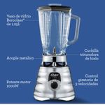 Las icónicas licuadoras Oster® son sinónimo de eficiencia y durabilidad. Y ahora, el nuevo diseño moderno de la espectacular licuadora clásica Oster® en cromo, reinventada y modernizada con perilla, te brinda una experiencia aún mejor. Su potente motor 6 veces más duradero** con 1000 W de potencia****, vaso de vidrio refractario Boroclass® resistente a ingredientes hirviendo*, acople metálico 10 veces más fuerte***, junto con su revolucionaria cuchilla trituradora de hielo te ayudan a preparar deliciosas y saludables recetas. Tiene un novedoso diseño y sus controles son ergonómicos. ¡Y estas son tan solo algunas de sus muchas otras ventajas! *Hasta un choque térmico de 90° **Comparado con motor modelo PU5443127-6115-AL en pruebas de carga ***Resistencia a la tracción de acero laminado en frio 1213 comparado con plástico PP ****Potencia pico