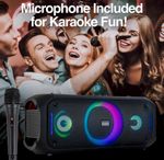Libera la experiencia de fiesta definitiva con el altavoz Bluetooth inalámbrico Rave 75 Premium. Con una impresionante potencia de 1500 vatios, este altavoz ofrece graves profundos y potentes, y agudos nítidos que animarán cualquier reunión. Disfruta de un espectáculo deslumbrante con cuatro luces multicolores que se sincronizan a la perfección con tu música. Con dos entradas de micrófono, es perfecto para noches de karaoke inolvidables. Su ranura para tableta/teléfono integrada, asas fáciles de llevar y una batería de larga duración lo convierten en un elemento esencial para tus fiestas. Realza cada evento con el sonido, el estilo y las funciones que buscas.