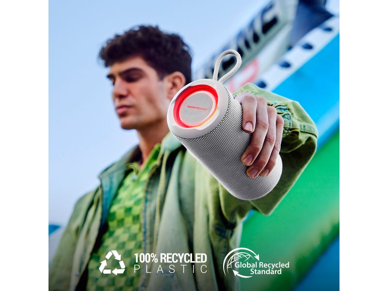 Altavoz con 40W, Bluetooth 5.4 y True Wireless Stereo. Hecho con plástico reciclado, cuenta con luces LED, IPX6, reproductor MP3 USB/microSD/audio-in, Radio FM y hasta 12h de autonomía ¡Disfruta de tu música como y donde quieras!