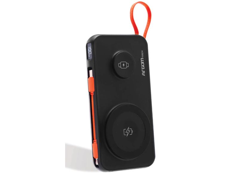 • Estación de carga 4 en 1: Admite carga inalámbrica para auriculares TWS, relojes inteligentes y otros dispositivos. • Cables integrados y almacenados: Incluye un cable tipo C y un cable Lightning/tipo C almacenado para mayor versatilidad.