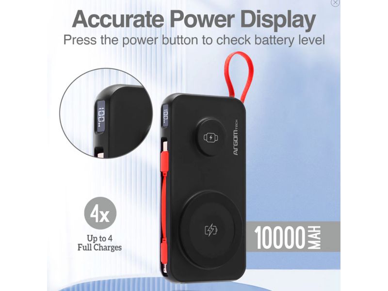 • Capacidad de 10 000 mAh: Proporciona hasta 4 cargas adicionales completas para smartphones compatibles.